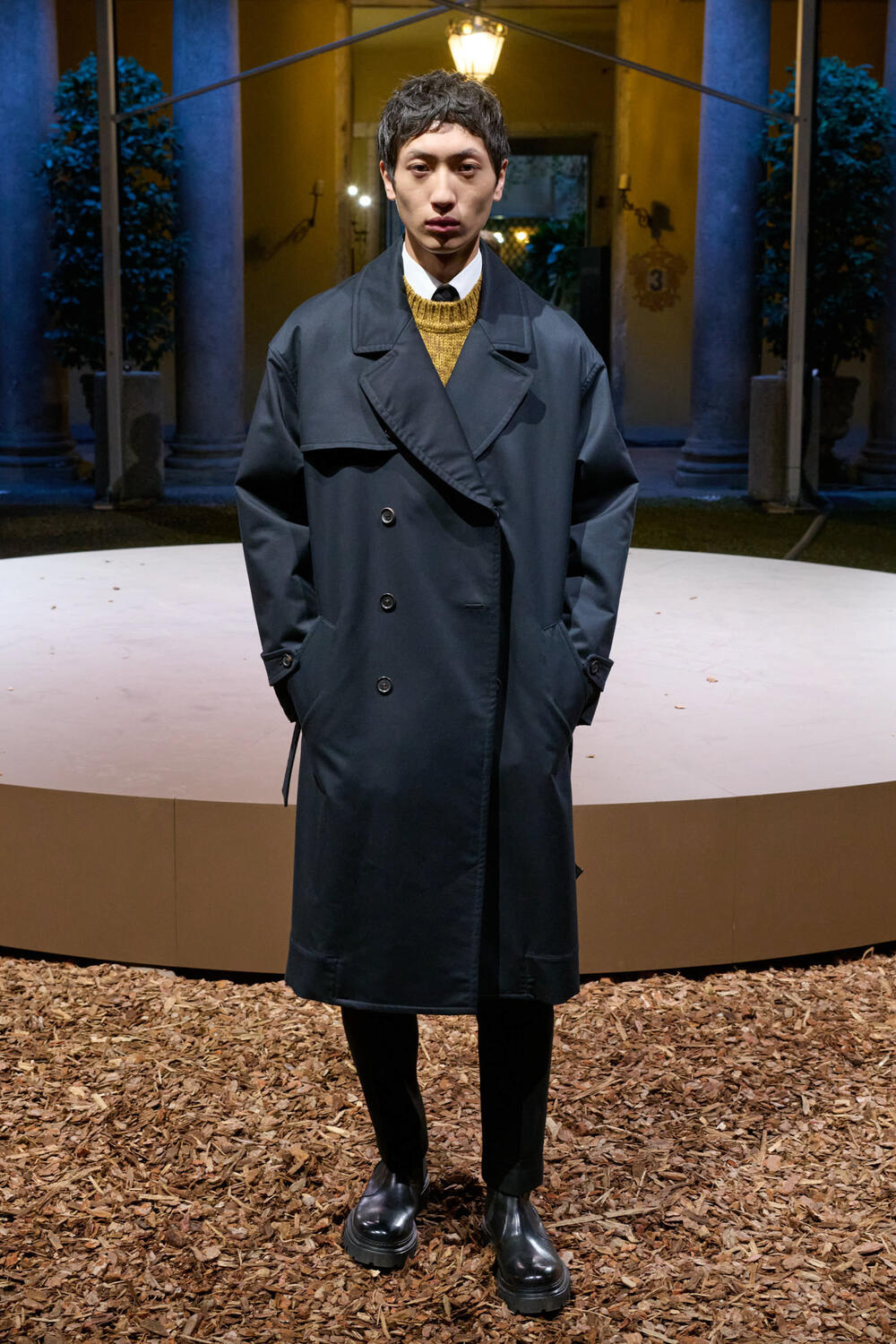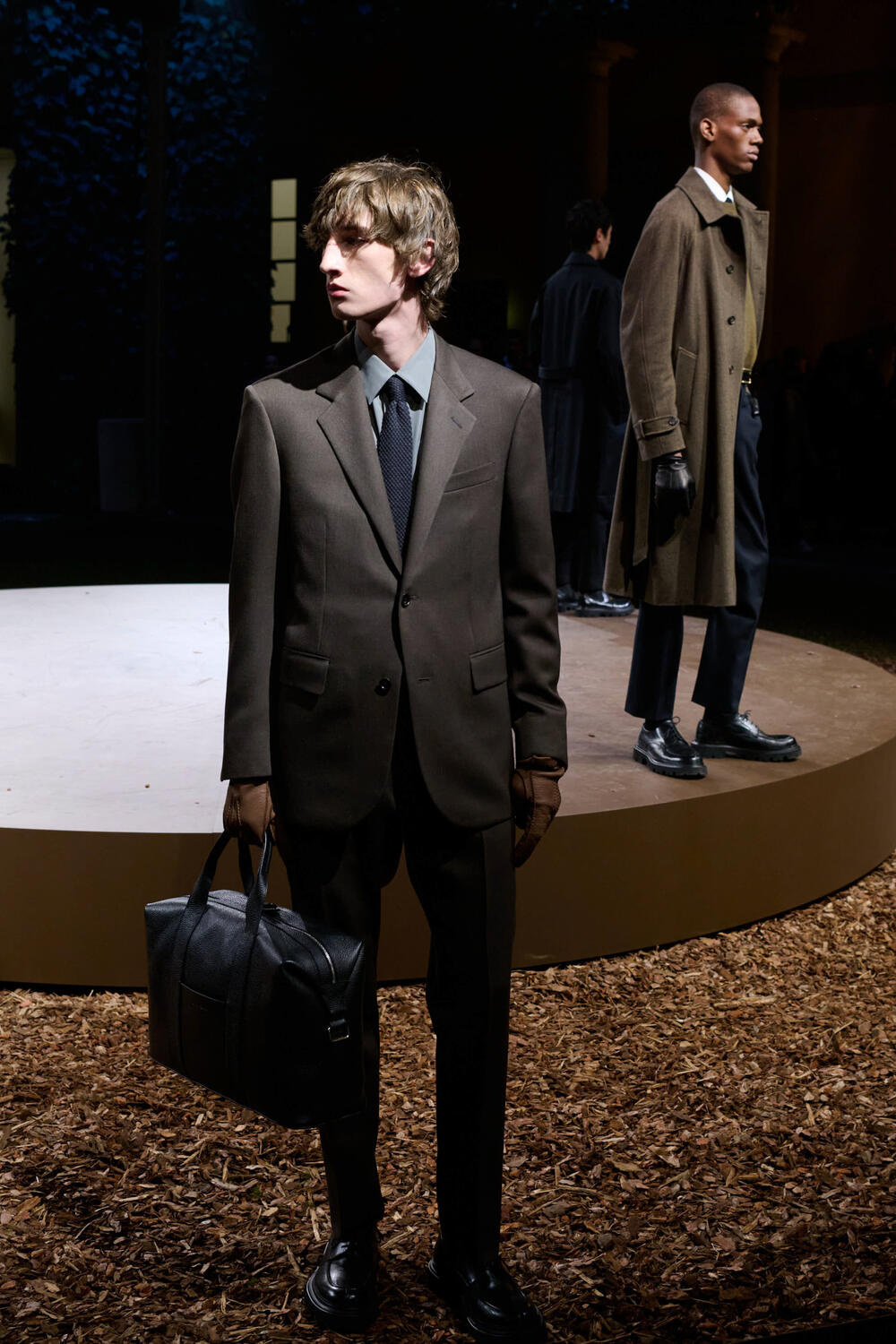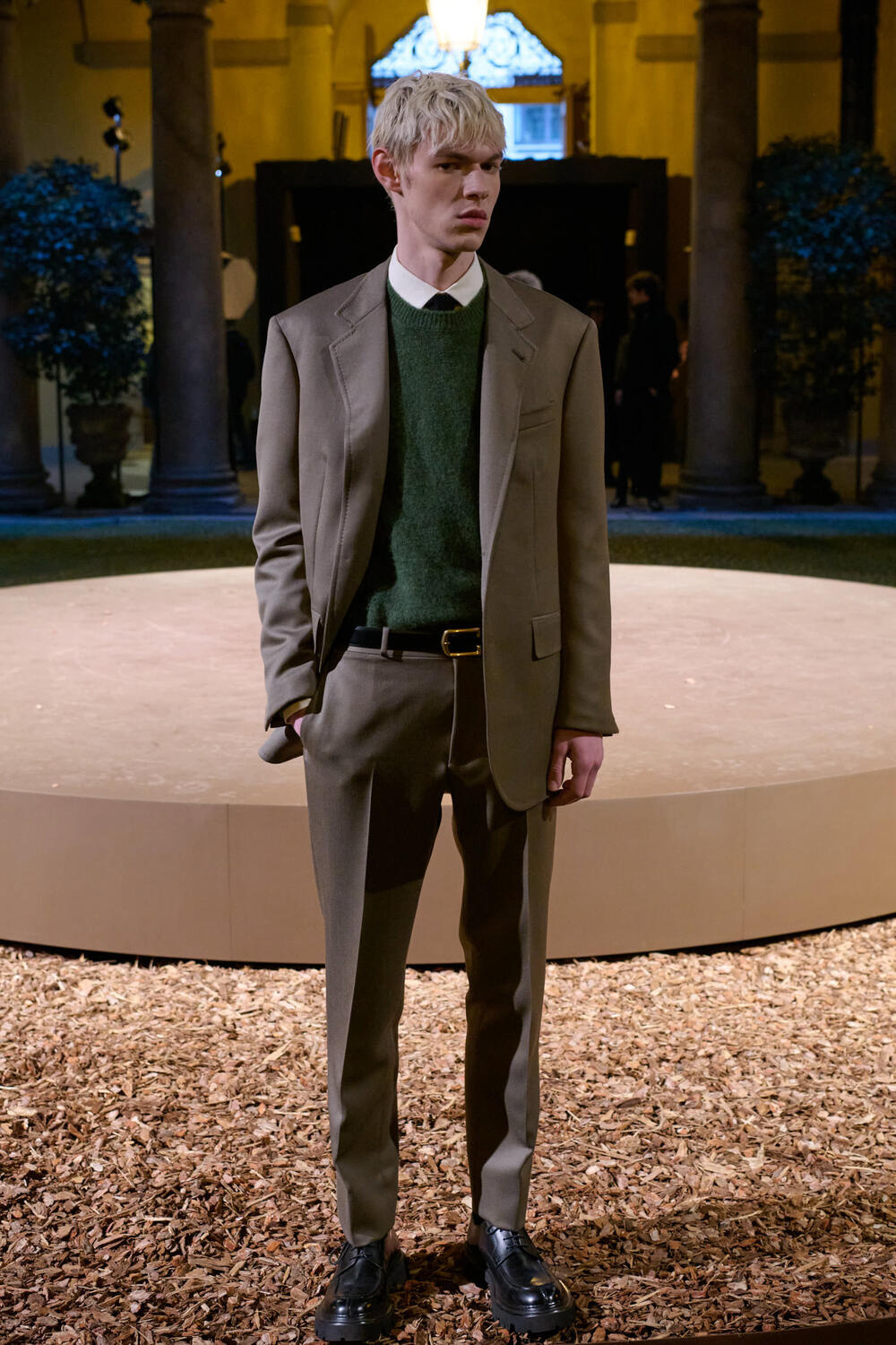 A completare l’atmosfera di raffinata armonia è l’intervento beauty del team The Agency Aldo Coppola, guidato da Matteo Filibeck e David Franceschetti. Gli hairstyling realizzati per la sfilata riflettono perfettamente l’essenza della collezione, alternando linee nette e texture definite a volumi più morbidi e fluidi, in un contrasto armonioso che rispecchia l’equilibrio tra rigore sartoriale e informalità elegante.