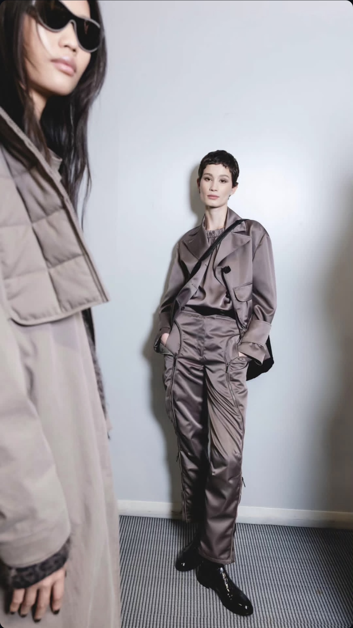 Bellazzi crea un equilibrio tra maschile e femminile anche attraverso lâhairstyling, accompagnando abiti minimalisti, cappotti avvolgenti e blazer scultorei con hair look dalla forte personalitĂ . La sovrapposizione dei capi trova una controparte nei volumi morbidi e nei dettagli lucenti delle acconciature.