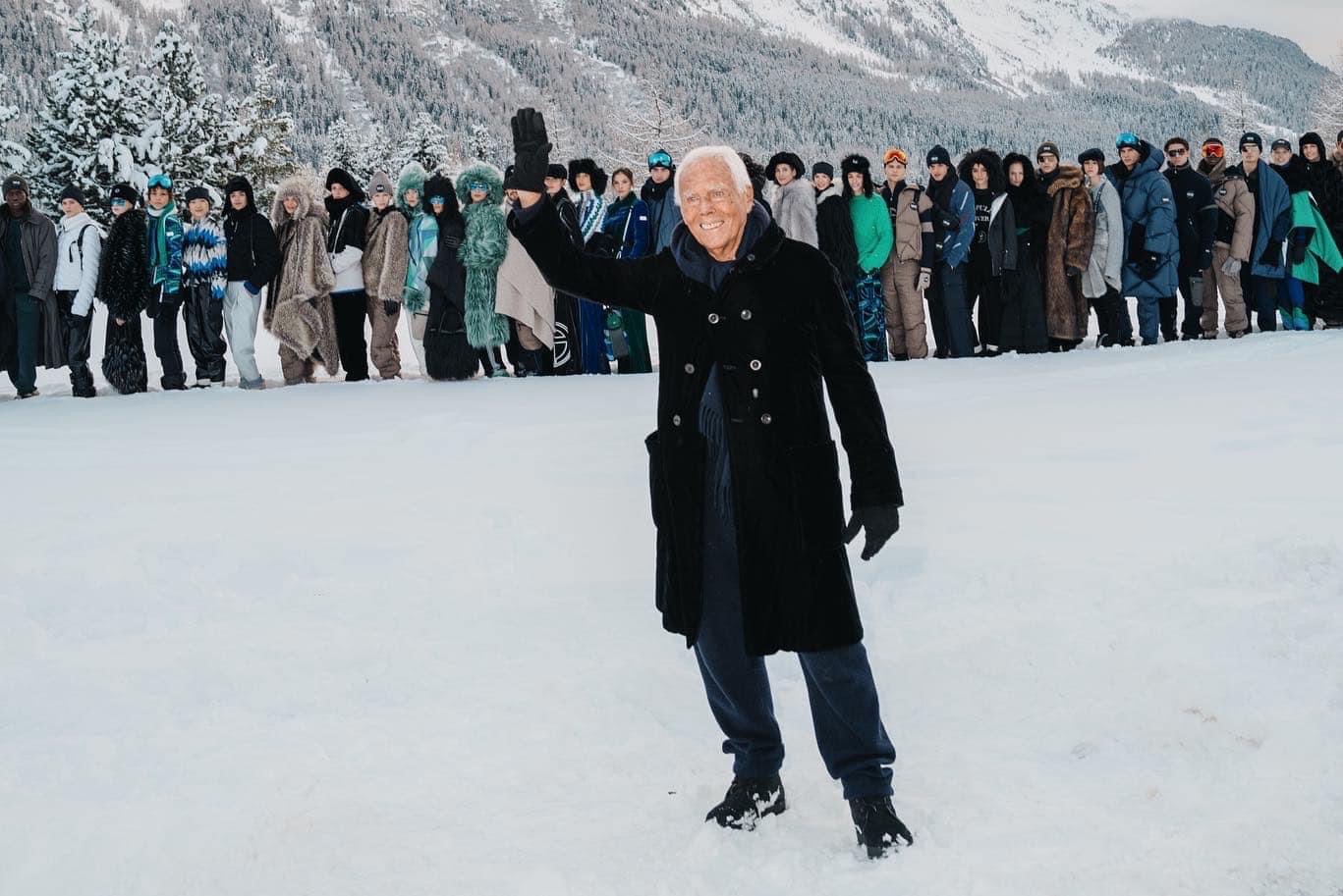 Il 10 dicembre 2022, Giorgio Armani ha presentato la collezione Neve Autunno/Inverno 2022-2023 a St. Moritz, trasformando l’Olympia Stadium in un teatro naturale per una sfilata all’aperto. La collezione, che fonde stile e funzionalità, include capi tecnici e après-ski per uomo e donna, realizzati con materiali eco-compatibili e tecniche di produzione sostenibili.