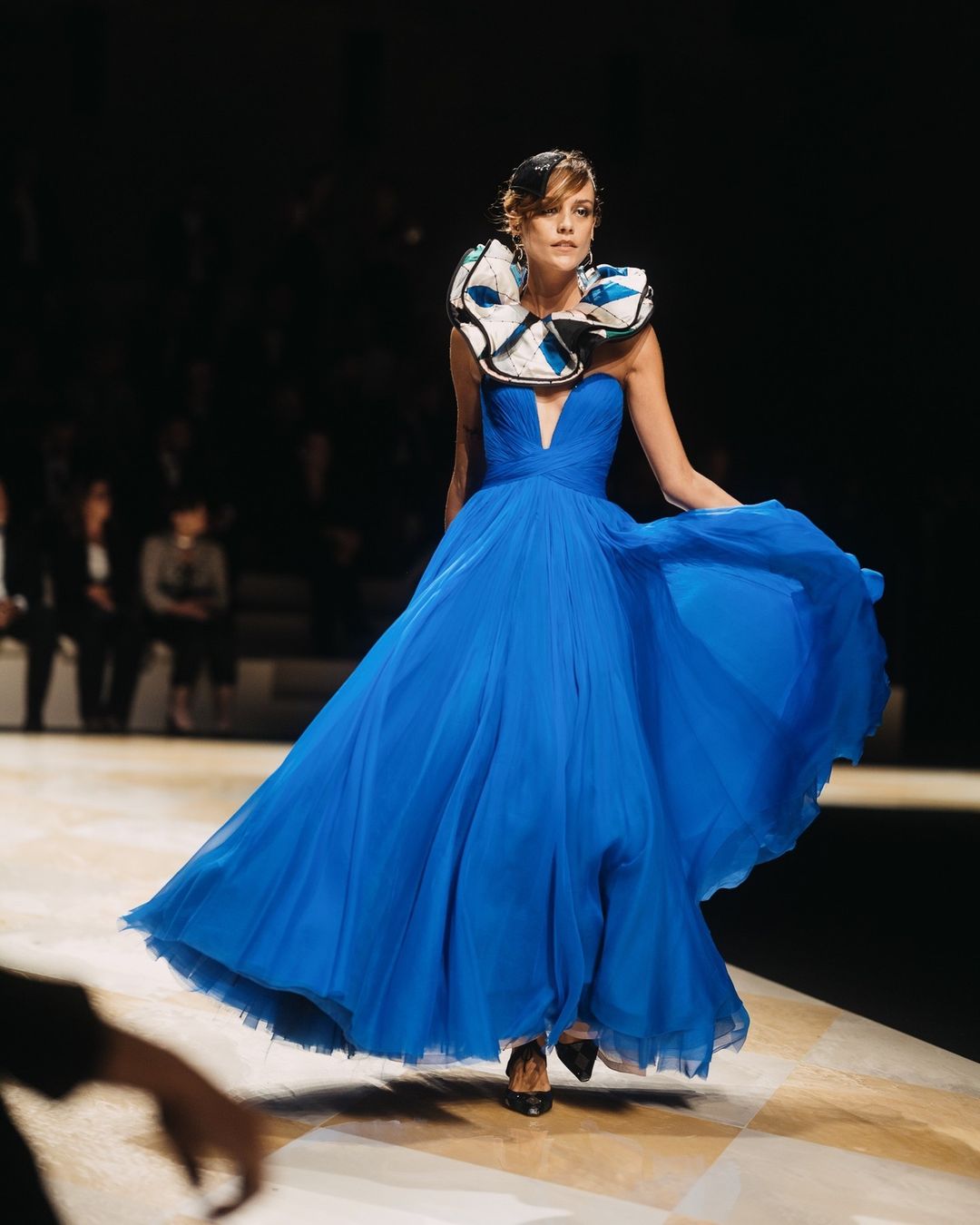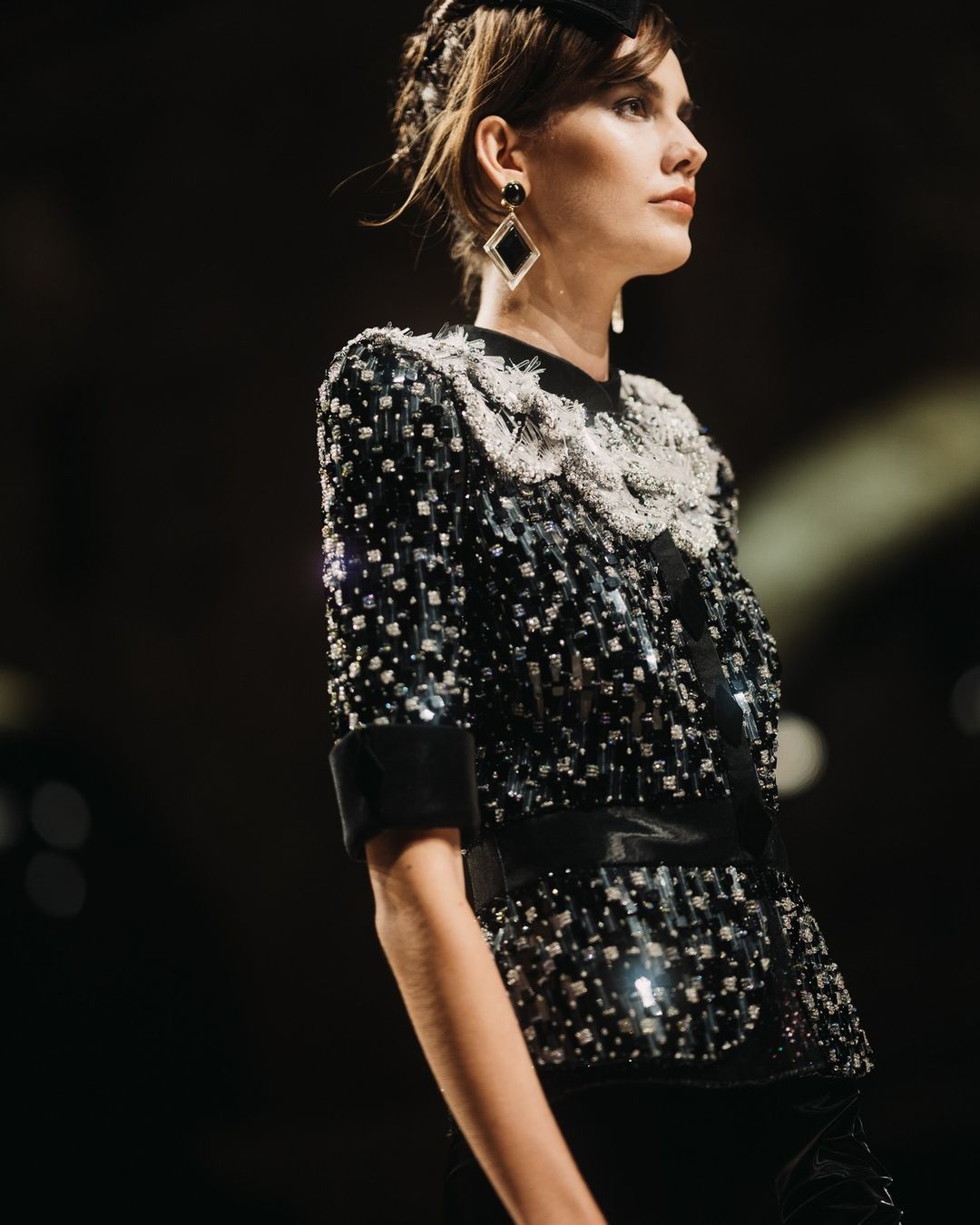 A definire l’estetica della passerella è stato il team beauty di The Agency Aldo Coppola, con Roberta Bellazzi alla direzione dell’hairstyling e Hiromi Ueda per il make-up. I capelli delle modelle sono stati raccolti in acconciature raffinate, con morbidi intrecci arricchiti da accessori eleganti e sofisticati, in perfetto equilibrio tra modernità e glamour classico.