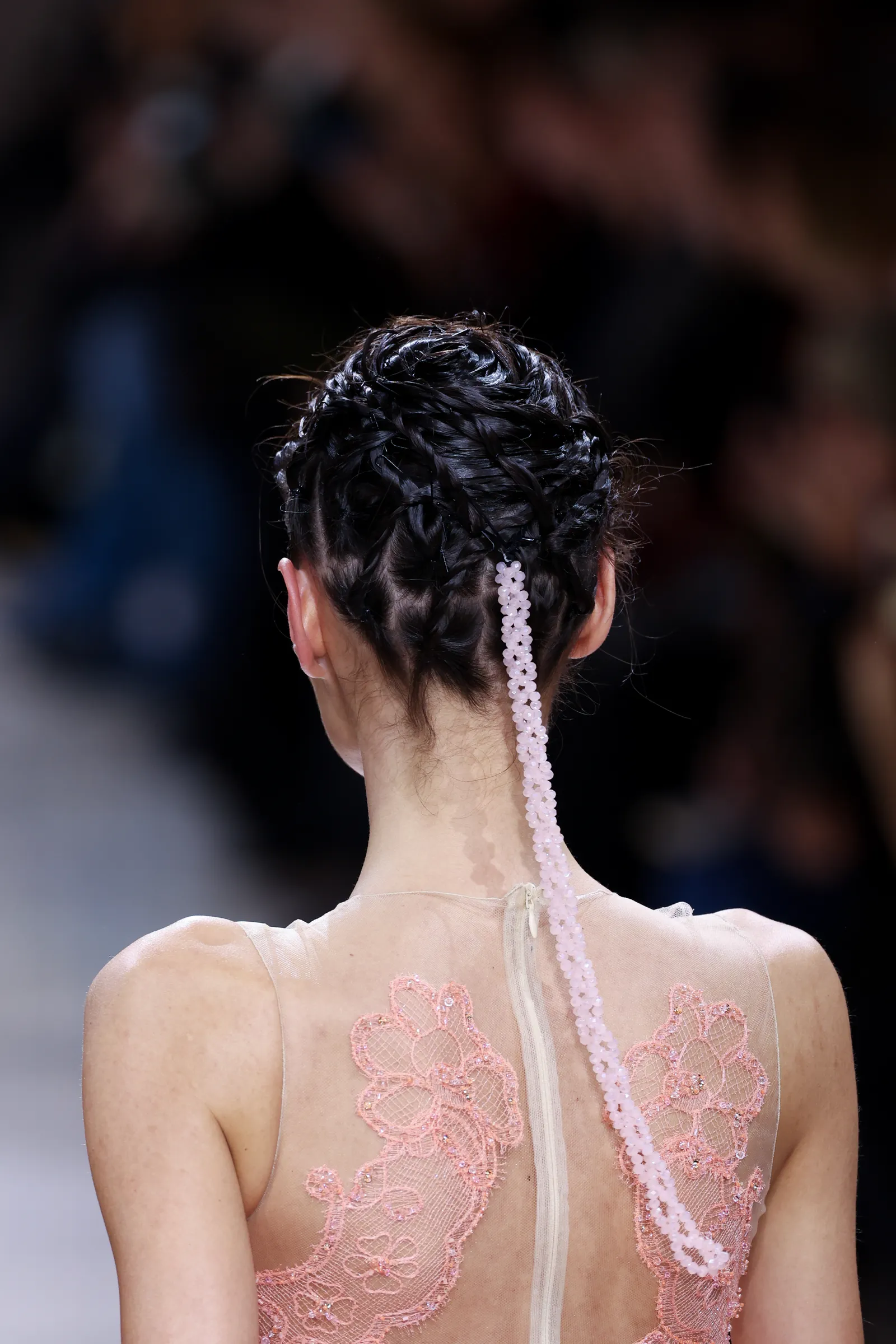 Unveiled at the Palais de Tokyo during Paris Haute Couture Week, the collection “Haute Couture en Jeu” by Giorgio Armani Privé presented a breathtaking vision of timeless elegance. The Armani woman steps beyond trends and seasons, radiating luxury, refinement, and artistic poise. The hairstyling, directed by Roberta Bellazzi with the expert hands of The Agency Aldo Coppola, became a pivotal element of the show. Intricate twisted torchons formed striking diamond shapes, enhanced by long, jewel-like braids that shimmered under the lights and accentuated the models’ beauty.