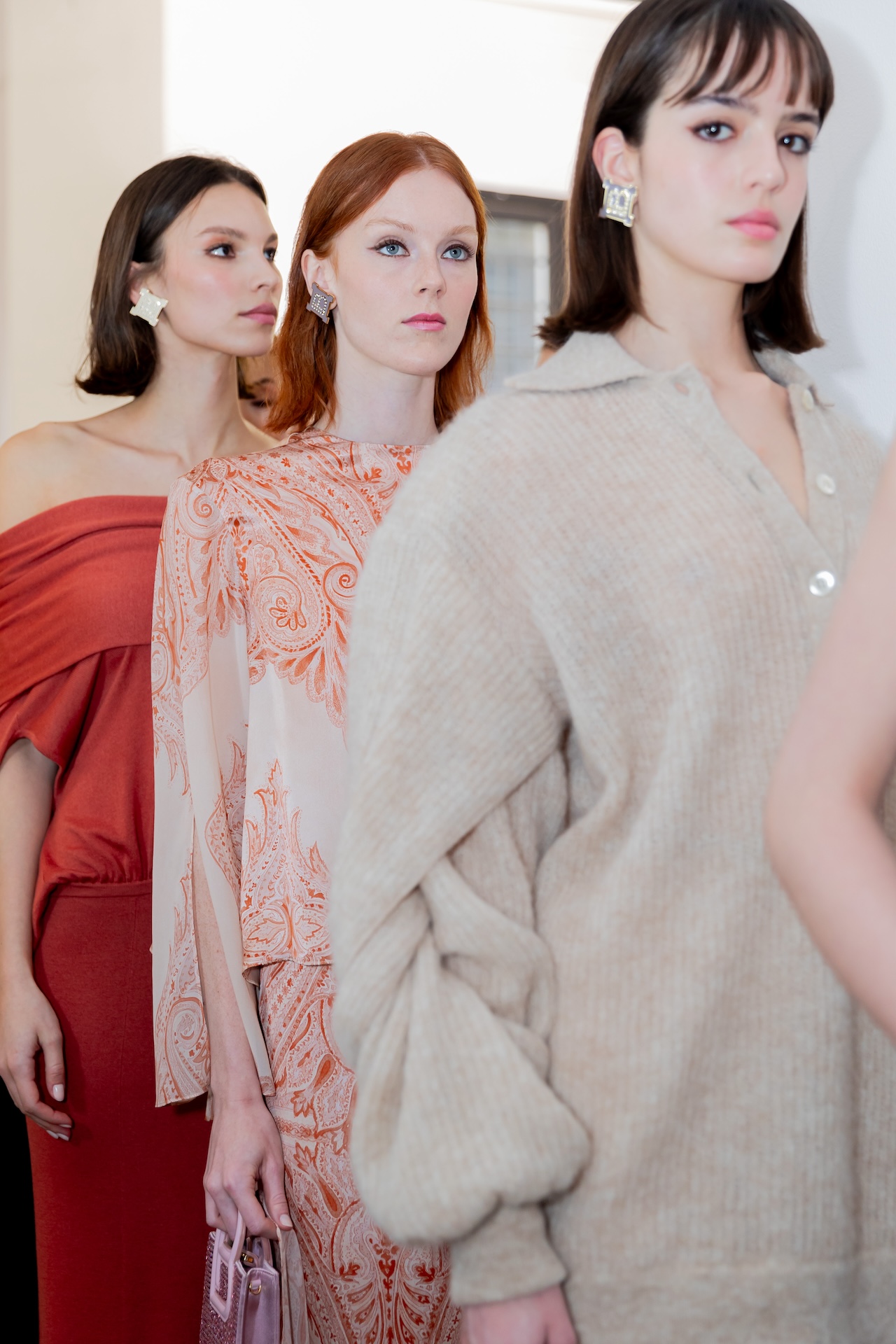 A completare il look, le acconciature diĀ Roberta BellazziĀ e il team diĀ The Agency Aldo Coppola: code perfette ma dal tocco naturale, morbide e impreziosite da foulard di seta. Il makeup diĀ Cristiana CeccarelliĀ esprime unāeleganza eterea: eyeliner brown, pelle radiosa e labbra albicocca, per un effetto fresco e sofisticato. Cura dei dettagli anche per le nails, perfettamente in armonia con lāestetica ricercata della collezione.
