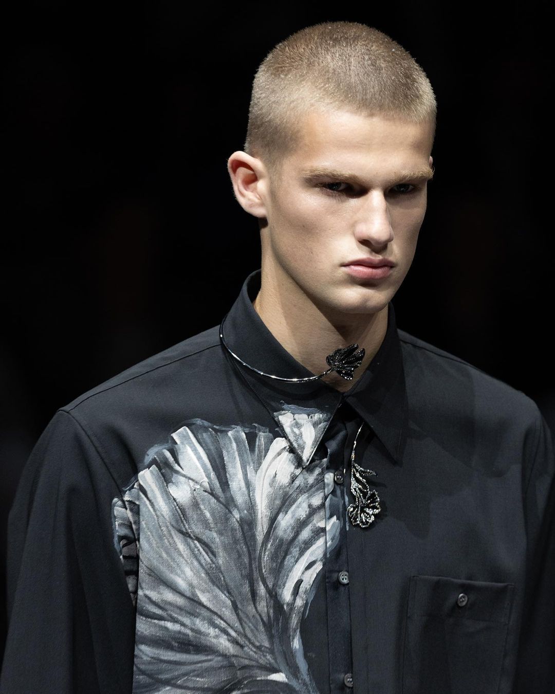 La raffinata e sobria eleganza di Emporio Armani si è riflessa nell’hairstyle creato da Roberta Bellazzi di The Agency Aldo Coppola. Acconciature fluide e leggere sono state impreziosite da dettagli luminosi e scintillanti, regalando un tocco di luce tra le ciocche dei capelli.