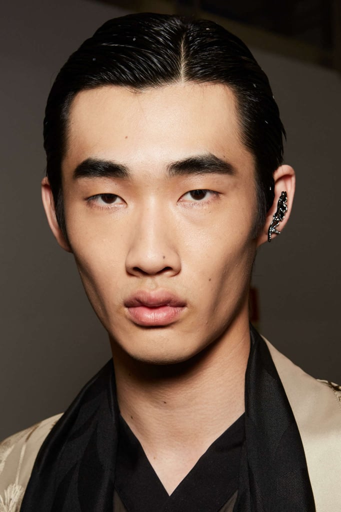The refined and sober elegance of Emporio Armani was reflected in the hairstyle created by Roberta Bellazzi of The Agency Aldo Coppola. Flowing and light hairstyles were embellished with bright and sparkling details, giving a touch of light between the locks of hair.