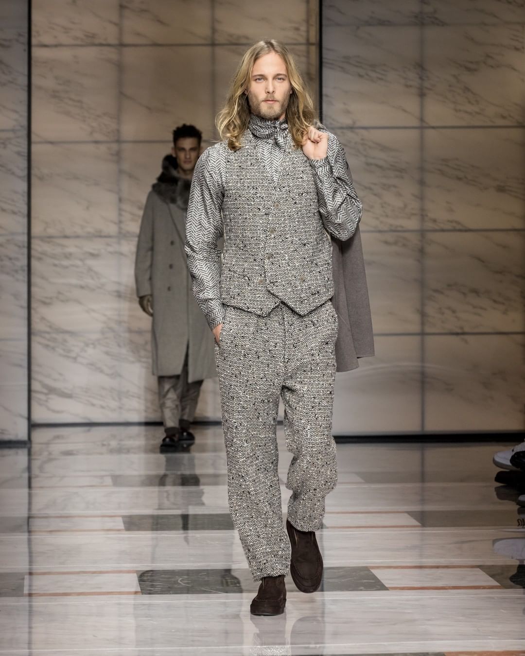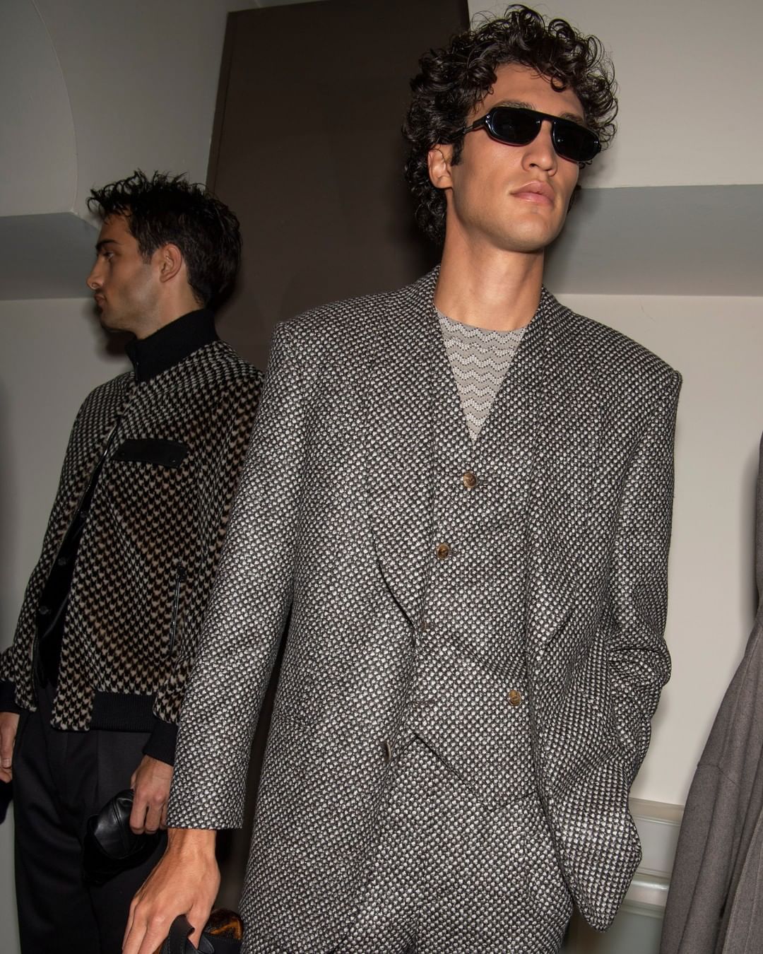 The Giorgio Armani Men’s FW 23-24 show collection is inspired by Milan’s atriums found in noble palazzos.