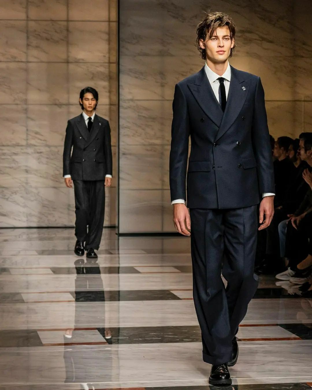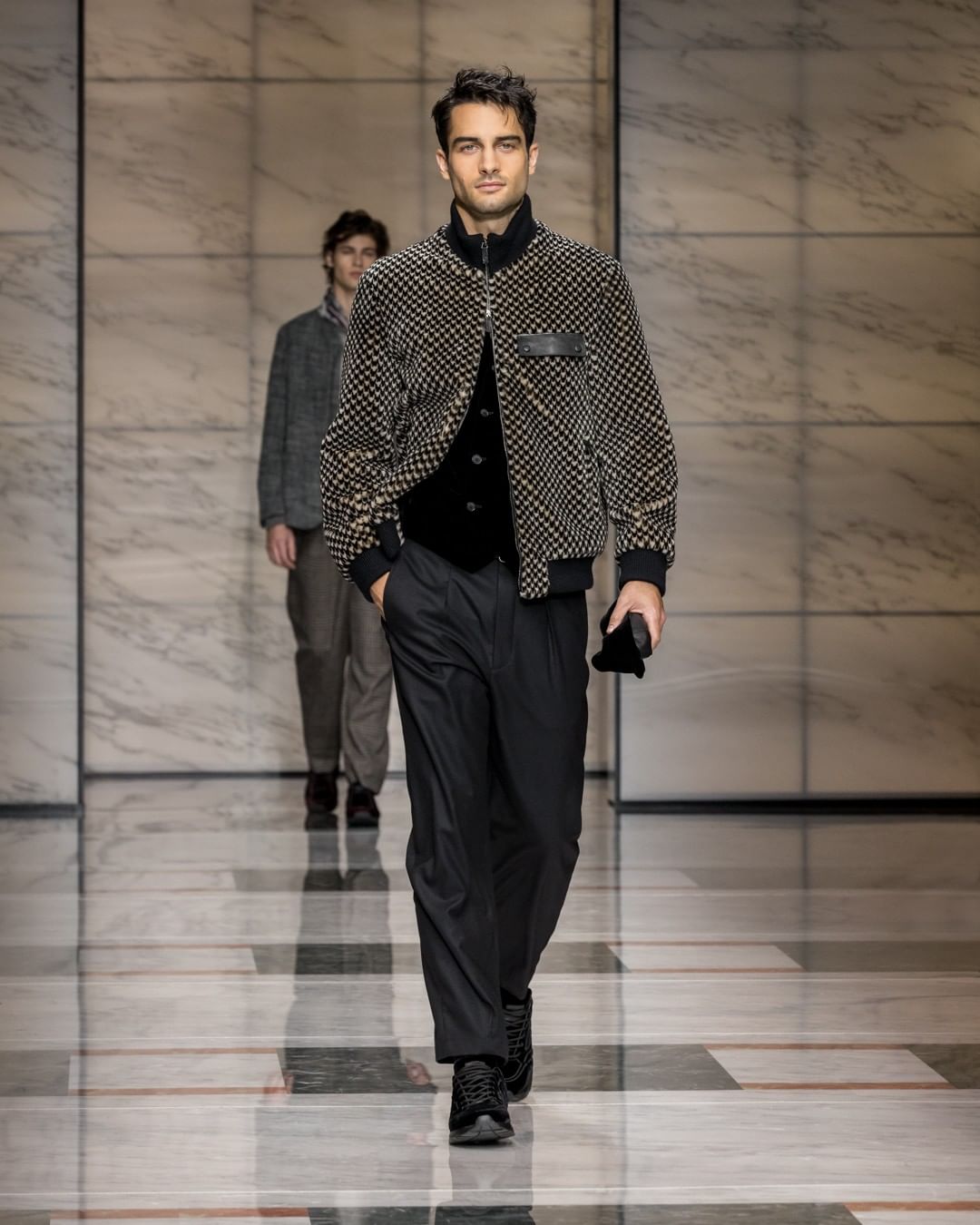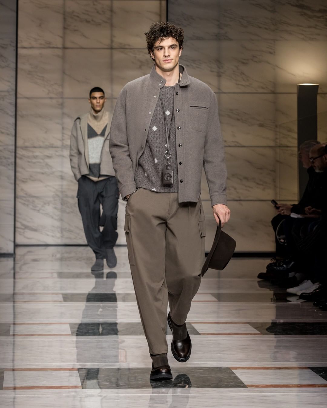 La collezione uomo Giorgio Armani per l’autunno-inverno 2023-2024 è ispirata agli atri milanesi dei palazzi nobiliari.